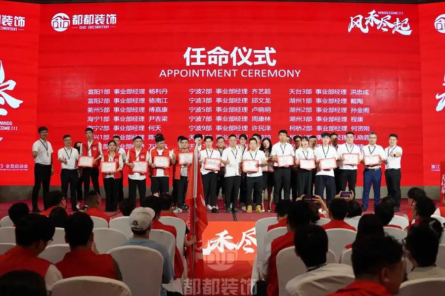 至此,「风禾尽起」浙江都都装饰《年中大促》全员启动会圆满落下帷幕,我们满载着成绩与荣誉走来,又带着新的决心与期盼继续向前,都都装饰的所有家人们,让我们下半年继续起航,用拼搏和奋斗,共创辉煌!
