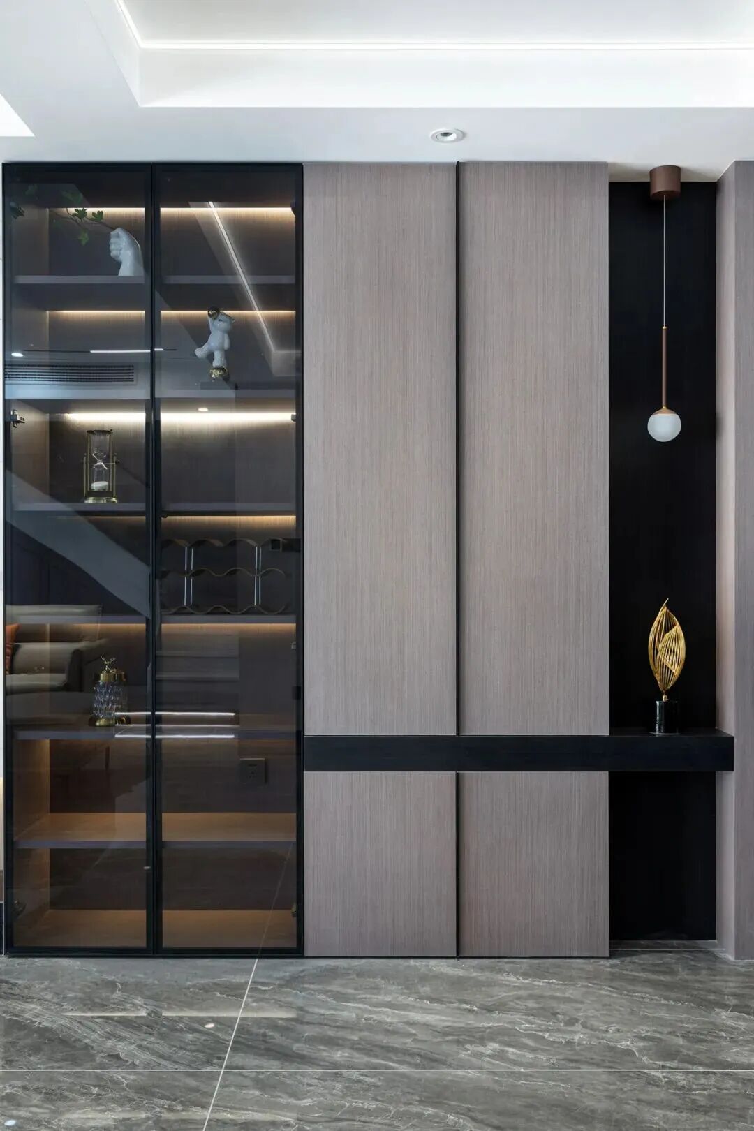 ● 可以选择一半玻璃柜门一半板材柜门,收纳展示两手抓。